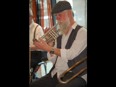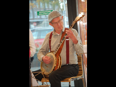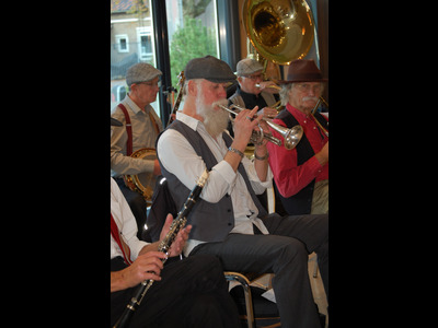 Na het openings nummer Hot Club Swing zat de sfeer er direct goed in. Een ander nummer dat opviel was April Showers, terwijl het toch november was. Verder was ook Sint James Infirmary te horen met zang van Herman, de slagwerker. Ook de solo van Rob, de banjoist viel op, in het nummer van die “huilebalk” Willy the Weeper. En verder nog A Long Way To Tipperary met zang van de 3 blazers op de voorste rij.